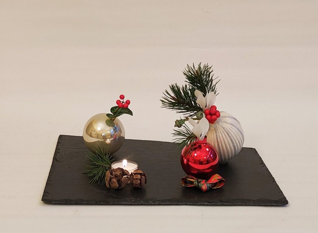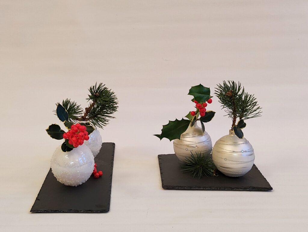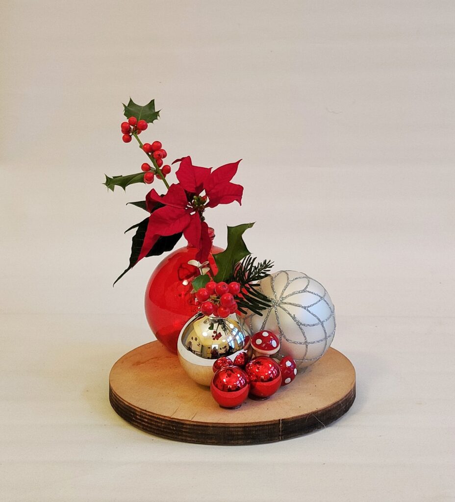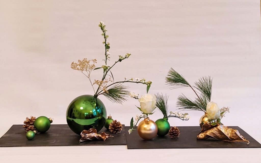 Ulrike Kuppels hält einen Workshop für Mini Arrangements mit Gefäß(en) aus Weihnachtskugeln. Farbe, Anzahl, Größe und sonstiges Zubehör können frei gewählt werden.