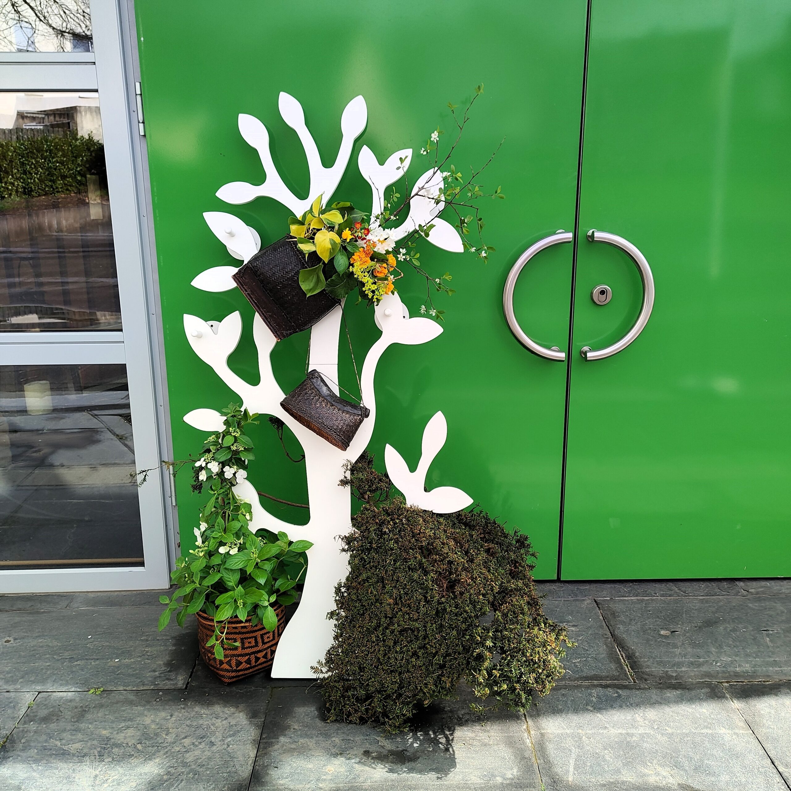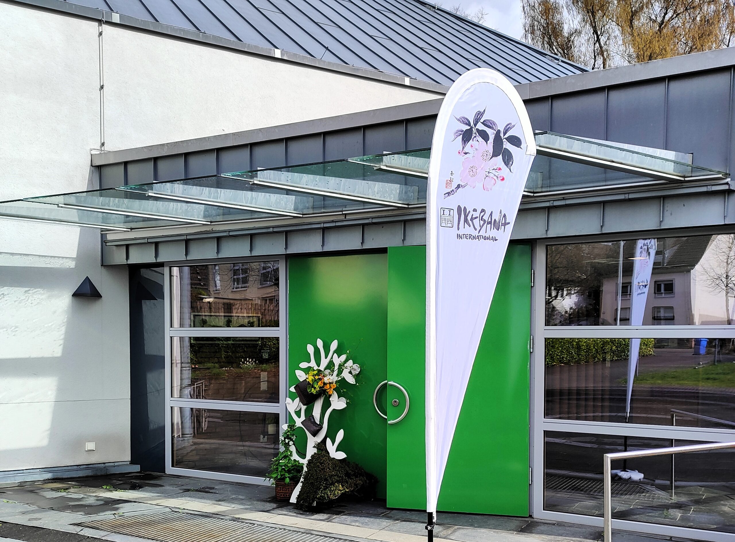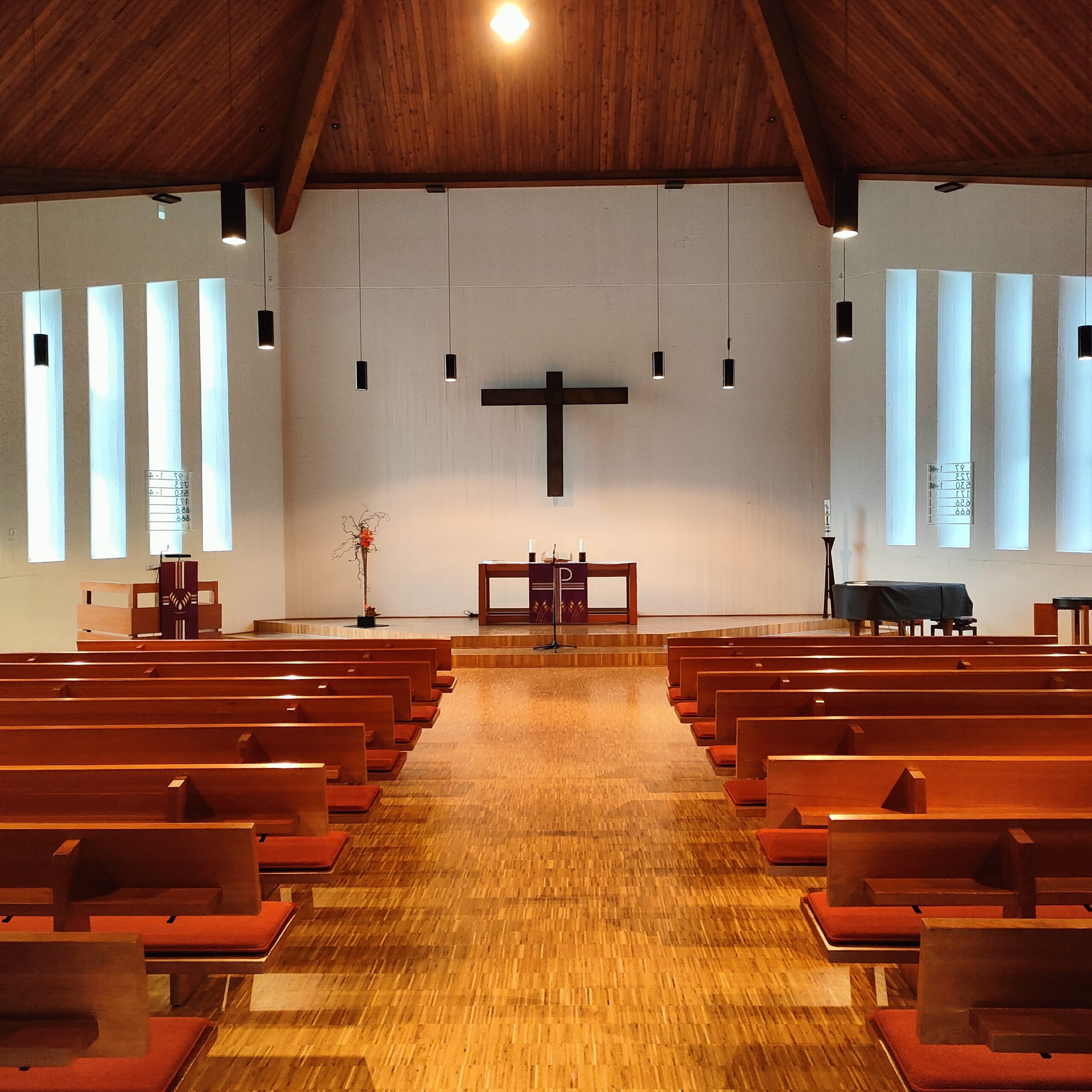Begrüßungsarrangement am Eingang und am Altar der Friedenskirche