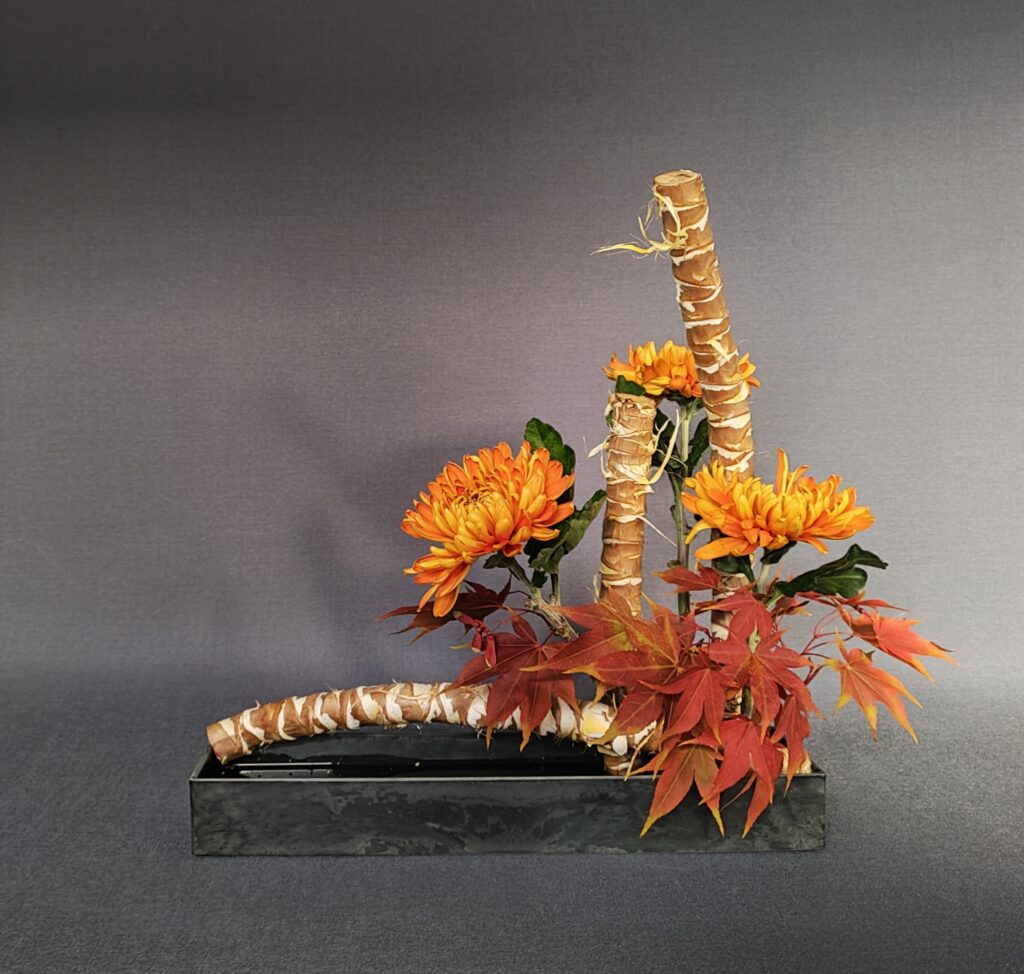 1 Brigitta Buse, Sōgetsu – Buche, Korkenzieherhasel und Chrysanthemen